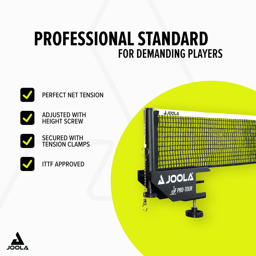 Experience professional playing conditions with the JOOLA Net PRO TOUR – the ideal competition set for discerning table tennis players!
