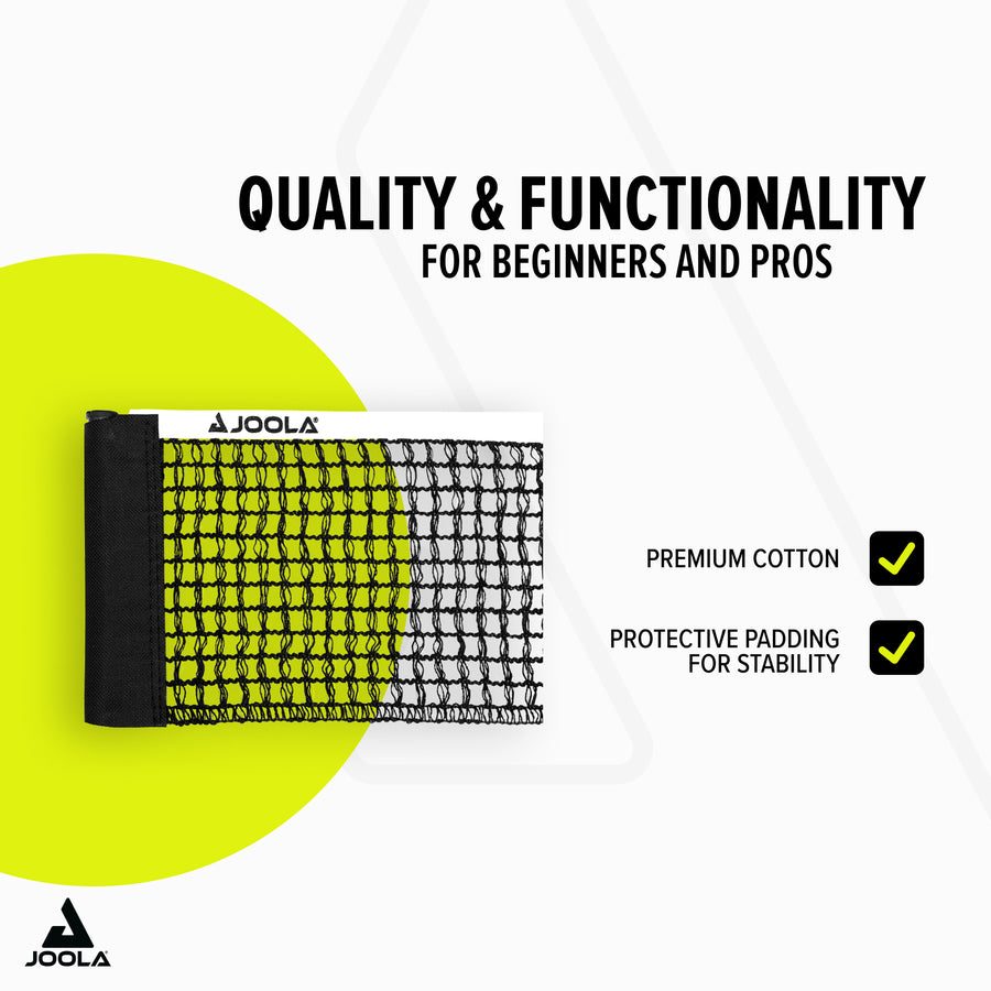 The JOOLA Net PRO TOUR is a high-quality competition set approved by the ITTF, distinguished by its excellent quality and outstanding value for money. Featuring a micro height adjustment screw and a durable cotton iron yarn net, it provides everything you need for professional table tennis matches.
