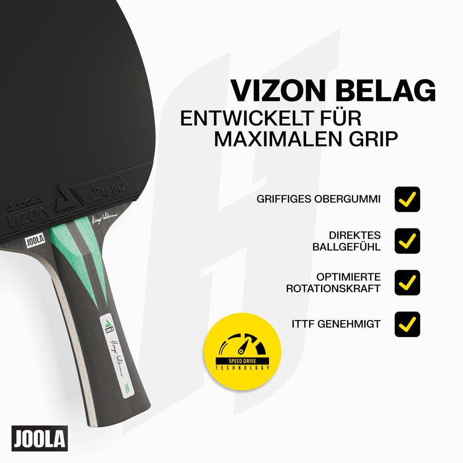 - ITTF-approved VIZON rubbers: High-quality rubbers with strong spin and speed potential – ideal for offensive play.