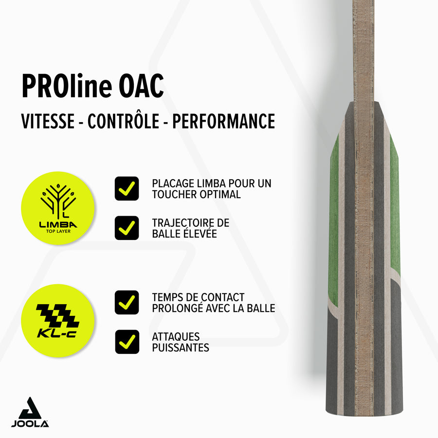 The PROline OAC is no off-the-shelf blade – it is a precisely tuned power package for ambitious offensive players who value speed and control. Many JOOLA professionals rely on this blade – and you will immediately understand why.