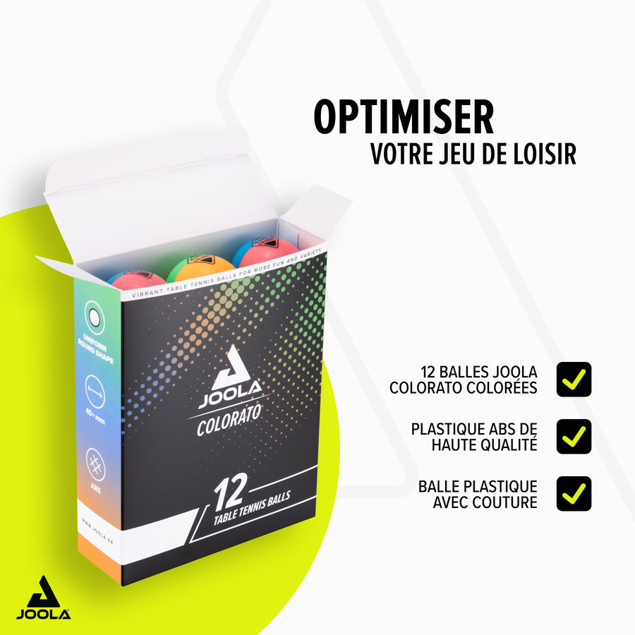 JOOLA Balles COLORATO 12er – Balles de tennis de table colorées pour encore plus de fun