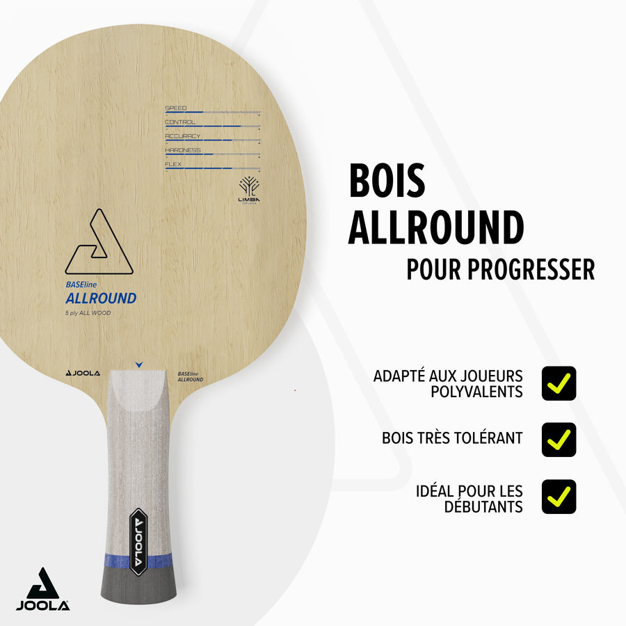 Vous recherchez un bois allround contrôlé avec beaucoup de sensation, qui s'harmonise parfaitement avec des revêtements modernes ? Alors le BASEline ALL est votre premier choix. Avec seulement 83 g, il est particulièrement léger et permet un jeu sans fatigue – idéal pour les enfants, les adolescents et les joueurs allround qui privilégient le contrôle.