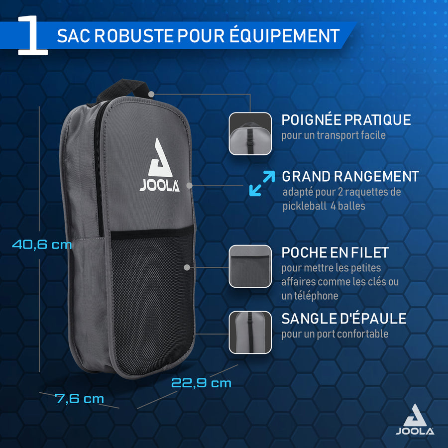 - Sacoche pratique : La sacoche fournie offre assez d’espace pour ranger les raquettes et les balles, avec une poche filet supplémentaire à l’avant pour les accessoires.