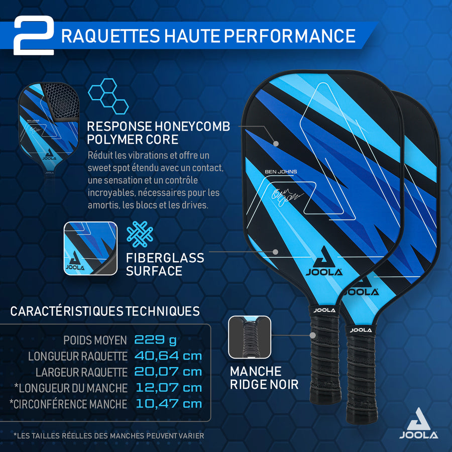 JOOLA Ben Johns Blue Lightning – Set de raquettes de pickleball pour débutants