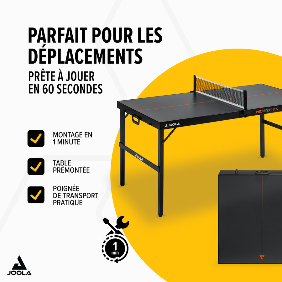 La JOOLA Midsize FA combine fonctionnalité, design et plaisir de jeu. Grâce à son format valise compact, sa manipulation aisée et ses excellentes performances, elle est parfaite pour intégrer le tennis de table dans votre quotidien.