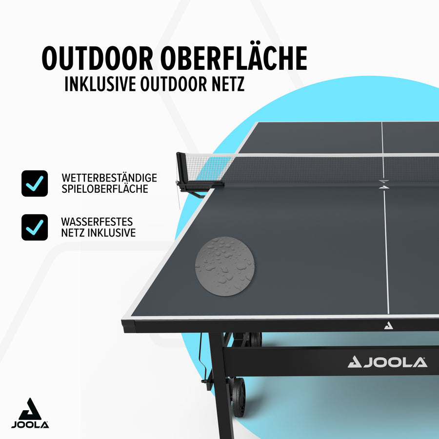 La table de tennis de table extérieure JOOLA Nova 500A est conçue pour ceux qui ne veulent faire aucun compromis en extérieur. Que ce soit pour des matchs intenses dans le jardin ou des entraînements exigeants sur la terrasse – sa construction robuste, sa surface résistante aux intempéries et ses détails bien pensés garantissent une qualité de jeu professionnelle en plein air.