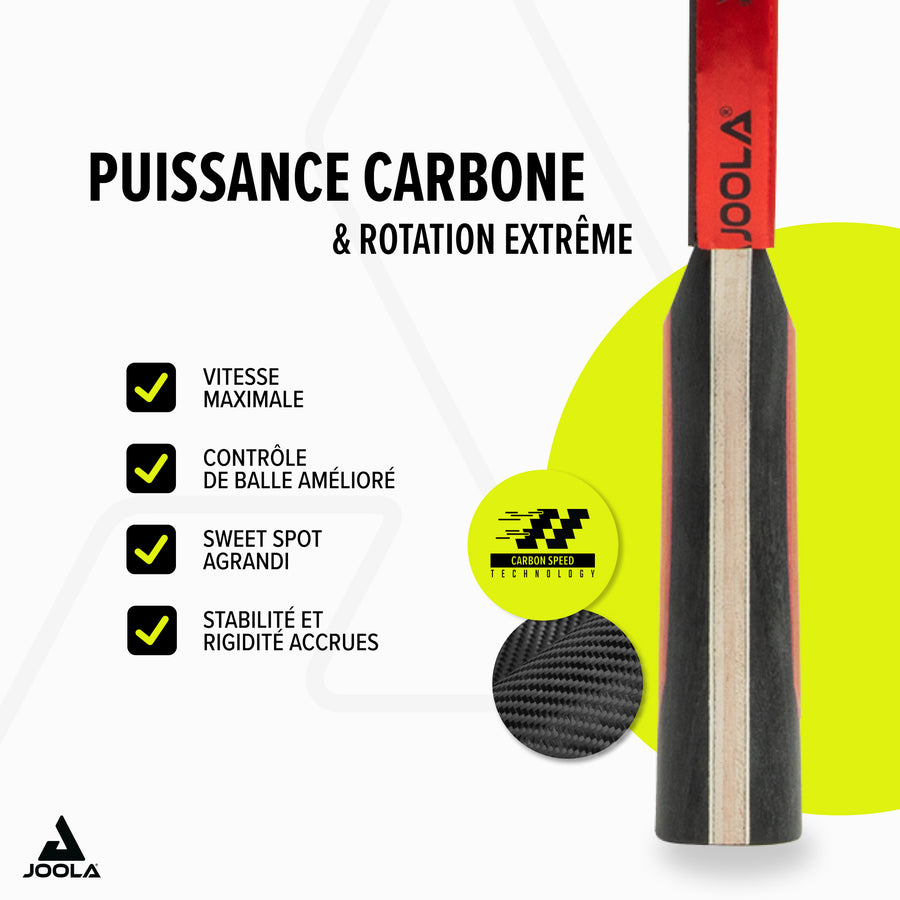 Tu recherches des performances sans compromis alliées à un design raffiné ? Le JOOLA RED CARBON X est ton atout maître. Conçue pour les joueurs les plus exigeants, cette raquette haut de gamme associe technologies avancées et puissance de jeu explosive.