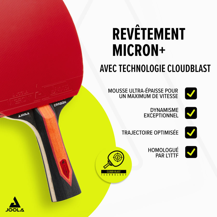 - Revêtement MICRON+ approuvé par l’ITTF – pour une puissance, une rotation et un contrôle maximum.