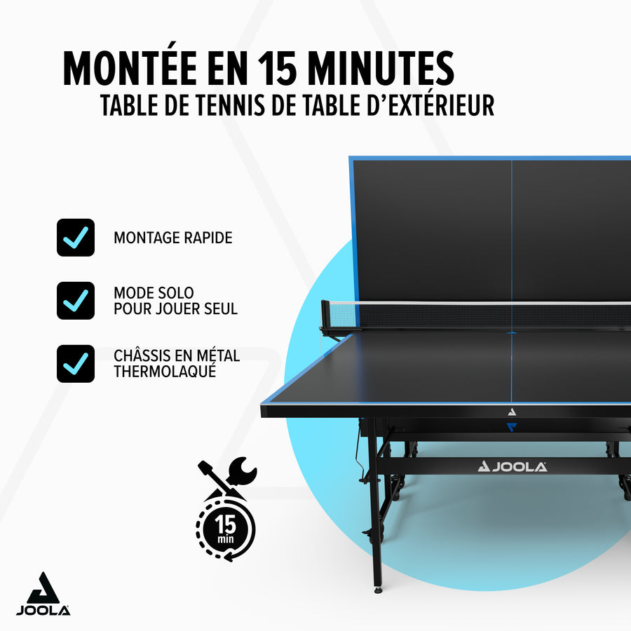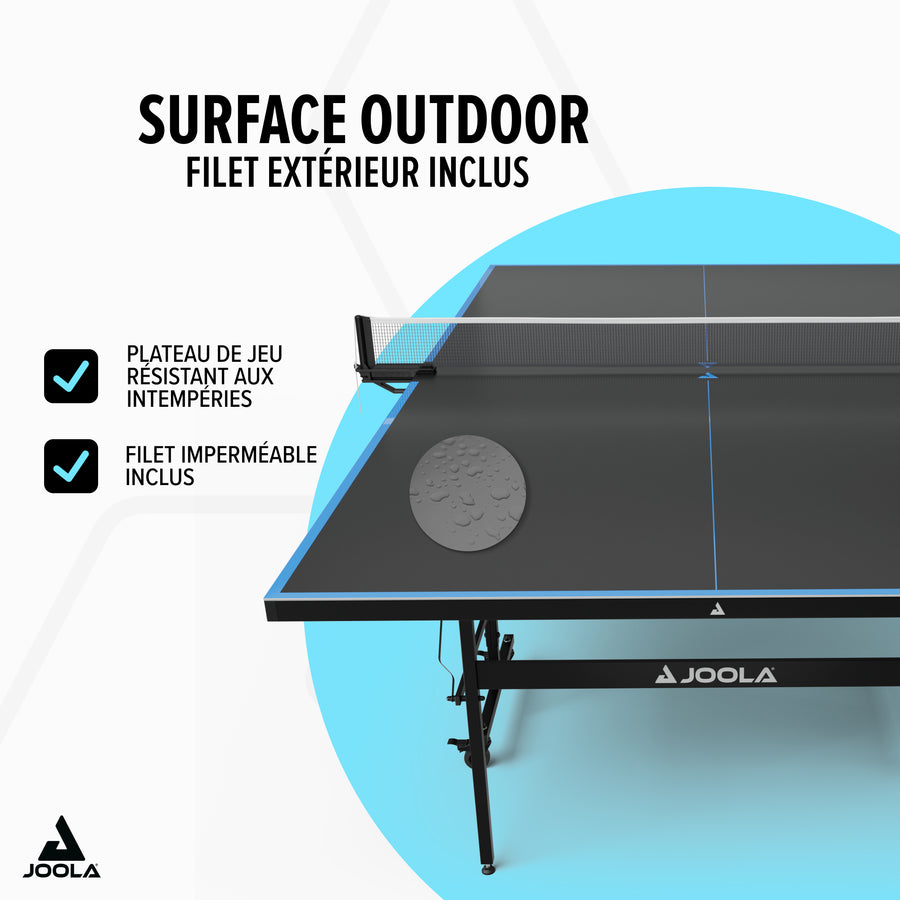 La JOOLA Outdoor J100A combine durabilité, flexibilité et excellente jouabilité – transformez votre terrasse ou jardin en véritable arène de tennis de table pour toute la famille et vos amis !